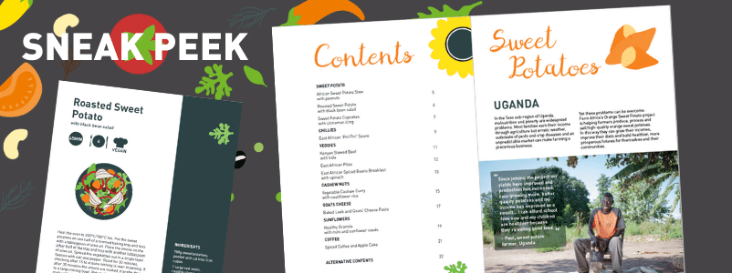 The cookbook is a 22-page booklet, bursting with recipes inspired by our projects and the countries we work in. From sweet potatoes to cashew nuts, the versatile ingredients mean the book is full of vegan and vegetarian dinners, delicious weekend bakes and plenty of east African recipes!