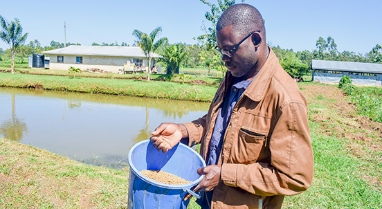 After a few seconds of clapping, ripples appear in the pool of water as shoals of tilapia flap their fins excitedly towards the edge of the fishpond for their morning meal. Shortly after Eliakim strews the floating pellets on the water surface, a bubbling sound ensues as gaping mouths devour them with relish. At only five months old, the fish in one pond at Bunyore Riverside Agricultural Development in Vihiga County already weigh 350 grams each.