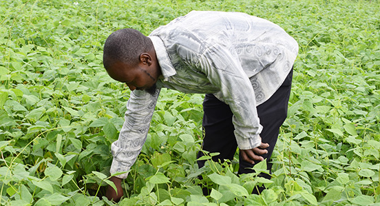 Bent in his field of lush French beans at his farm in the steep Elgeyo Marakwet terrain, 27-year-old Naphtali Wangai walks from row to row while uprooting recently sprouted weeds made recurrent by the short rains season.