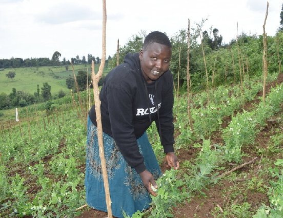 “Through vegetable farming, I am able to make money within a very short period of time. I have been able to invest the money in other projects such as a motorbike which we use to offer transport services and this increases my family income. My daughter is joining high school; it is money from vegetable farming that I will use to pay her school fees. I can now afford to buy whatever food we want to eat in our home,” noted 35-year-old Gladys Jepkosgei, who farms snow peas and sugar peas.