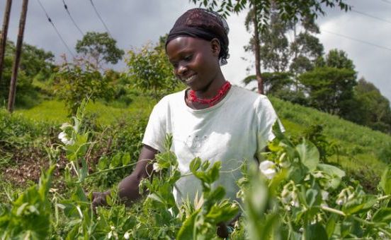 Gladys Kipkorir, 23, harvests snow peas at her youth group's farm in Leltangat Village, Trans Nzoia East