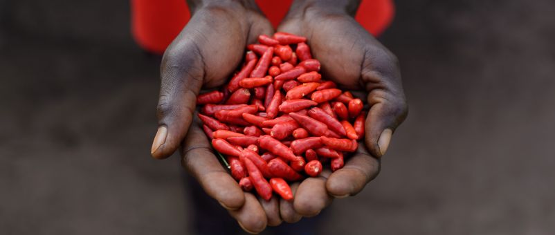 Female coffee farmers like Patience are working with Farm Africa to earn more from their efforts: through training in agricultural techniques such as pruning, spacing and weed control they can sustainably boost yields and improve the quality of their coffee! Small chilli seeds are making a big difference to farmers like Anyes, who can use the profits to send their children to school. And finally, farmers in Uganda are using the nutritious orange-fleshed sweet potato to improve their incomes and the health of their families.
