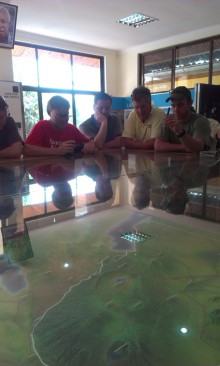 Photo: The trekkers checking out the scale model of the challenge ahead