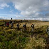The team began day four of their fundraising trek across Tanzania’s Highlands surrounded by heavy dew and the coldest temperature so far, around 2 or 3 degrees celsius. Yesterday they were walking through rainforest along a path circling the Ngorongoro crater with the ever present threat of elephants or buffalo crashing through the foliage. Today they walked across tussock grass plains with the hot valley stretching out into the distance below.