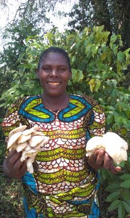 Photo: Rahabu, a mushroom farmer who met the trekkers today. Her income has doubled since joining Farm Africa's project 4 years ago. She is now able to educate her 3 school age children and is also building a new brick house with a tin roof that will give her family far greater protection.